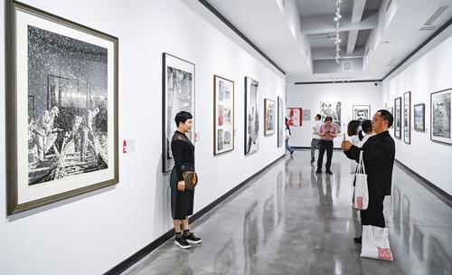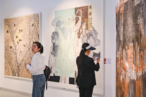 4月28日,九龙坡区黄桷坪102艺术基地廉洁文化艺术展览馆,“红岩清风”廉洁文化美术作品展览正式开展。图为观众正在观展。记者 齐岚森 摄