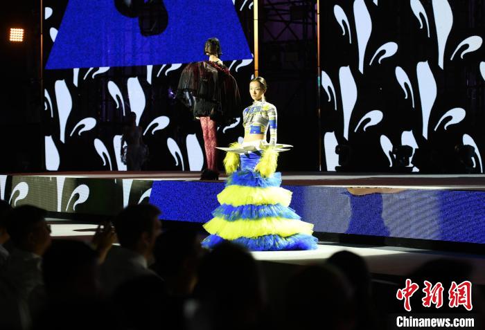 图为模特走秀吸引眼球。中新网记者 周毅 摄