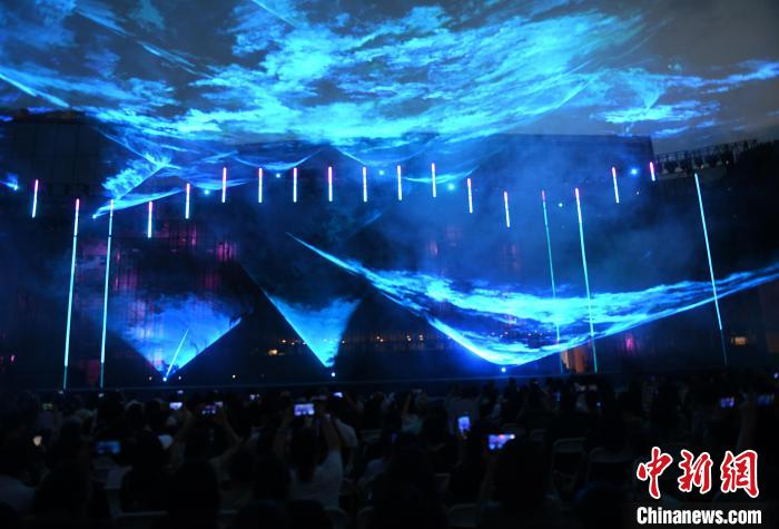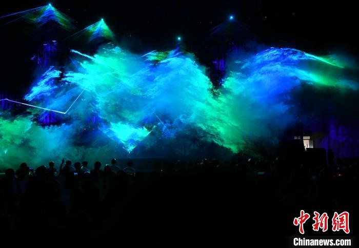 图为活动现场的灯光秀流光溢彩,吸引观众拍照留念。中新网记者 周毅 摄