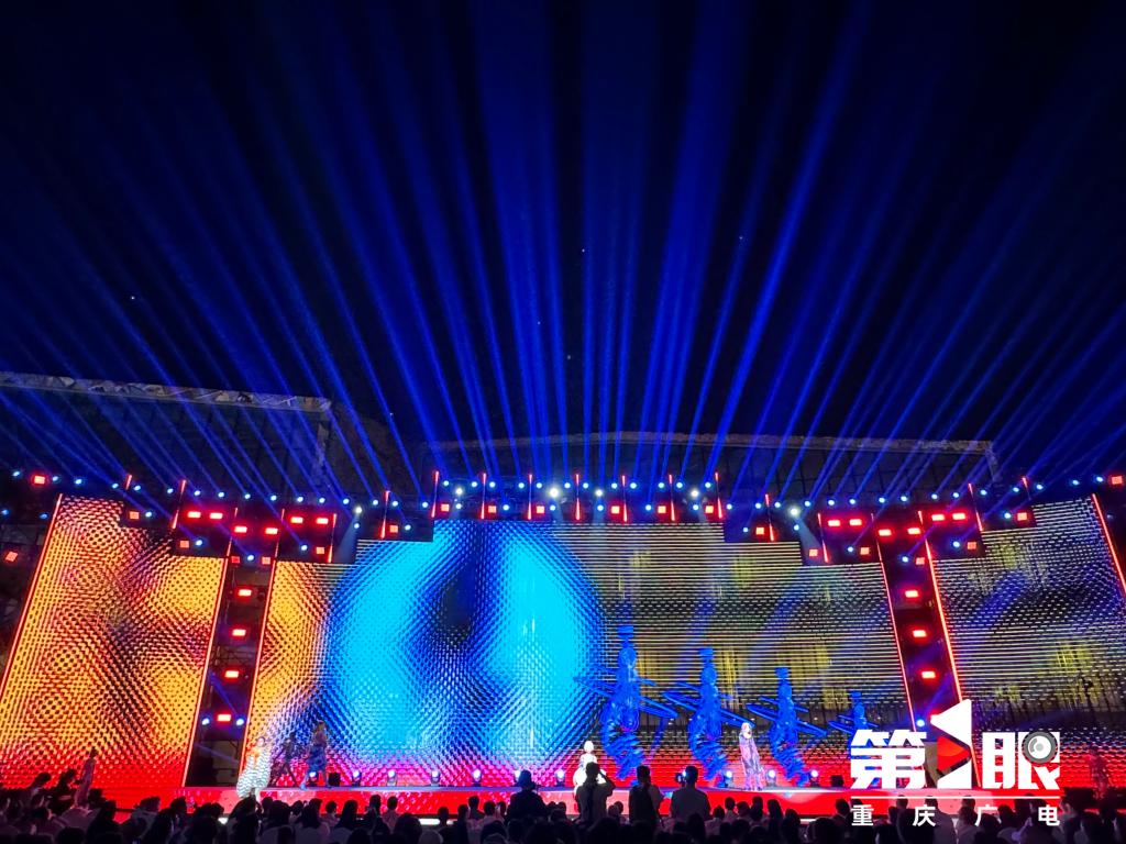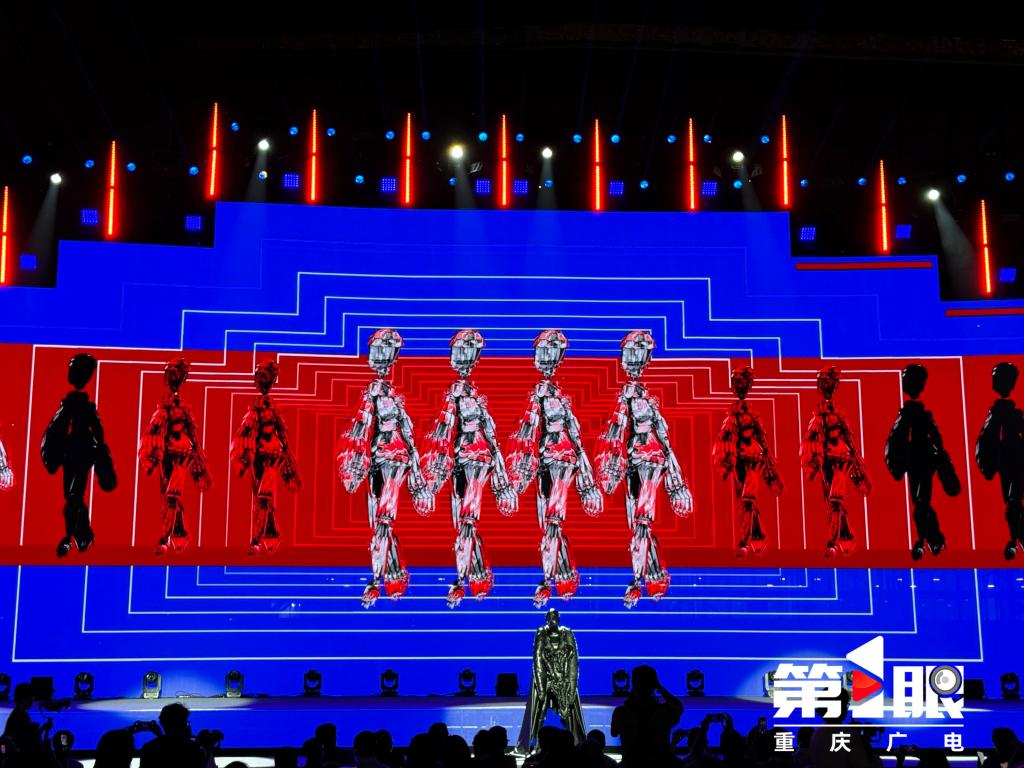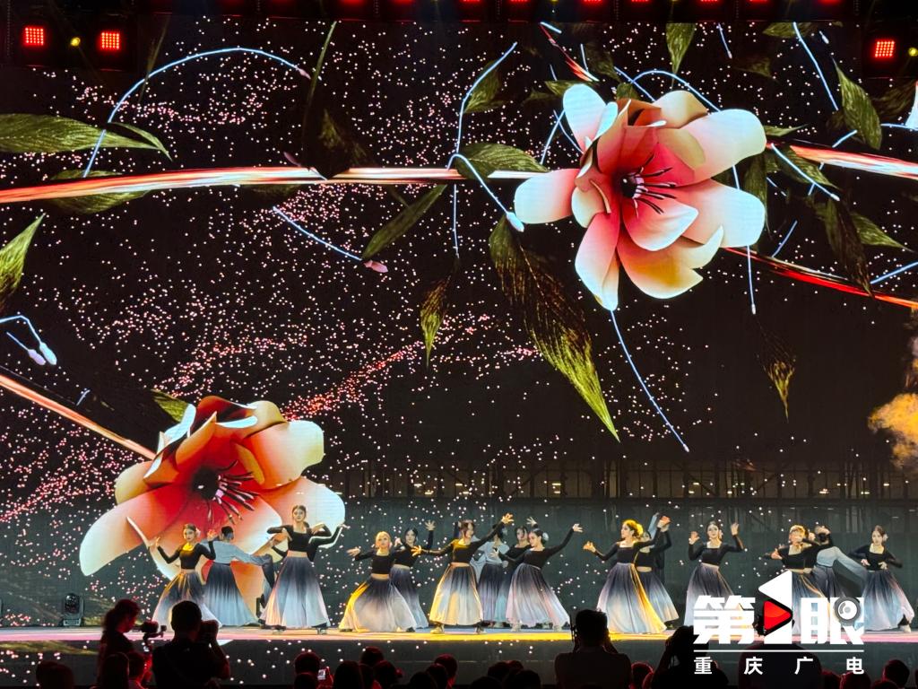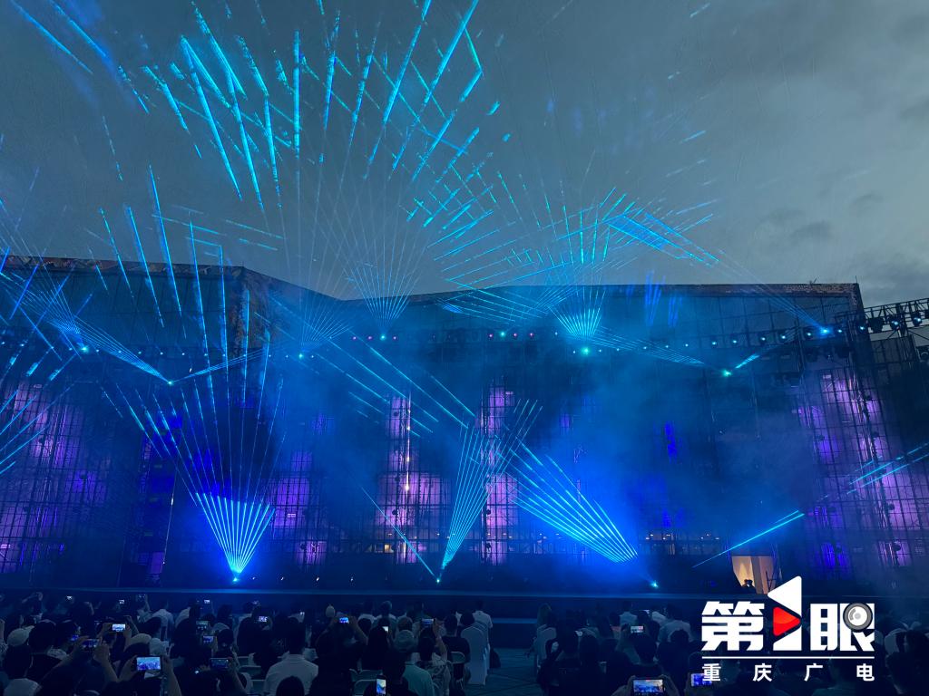 夜幕降临,灯光秀预热开场,四川美术学院美术馆东门广场上,气氛逐渐热烈。大学生艺术团,用流行乐、民族舞和现代舞致敬青春;重庆市川剧院,重现西部戏剧文化精粹与新媒体艺术的融合共创;服装系2024届优秀毕业作品展演“升·昇”与毕业季主题光影秀《Glow-Grow:青春溢彩》重磅压轴,在现代科技与建筑空间中,碰撞出具有川美特色的视觉艺术焕影。