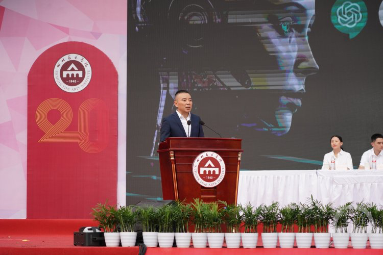 焦兴涛说,不是每一位毕业的同学都一定能成为艺术家、设计师,但是你们完全有能力成为这个时代的创意创新工作者。近年来,蓬勃发展的艺术赋能乡村振兴、与城市更新社会治理相关联的城市社区艺术、与心理健康相联系的艺术疗愈以及与共同价值观塑造相协同的社会美育,都已经成为今天艺术新的领域。