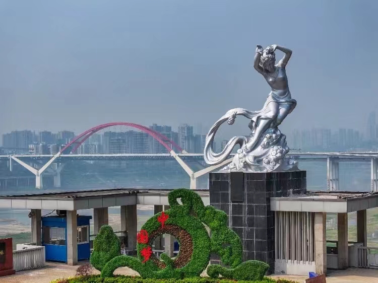 重庆长江大桥桥头,雕塑《春》。 图片来源 新重庆-重庆日报客户端