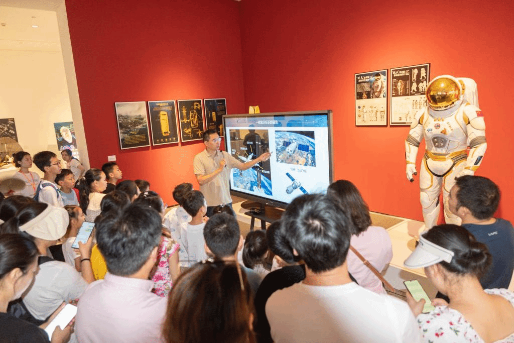 ▲胡永攀在艺术设计展区开展科普文化教育。受访者供图