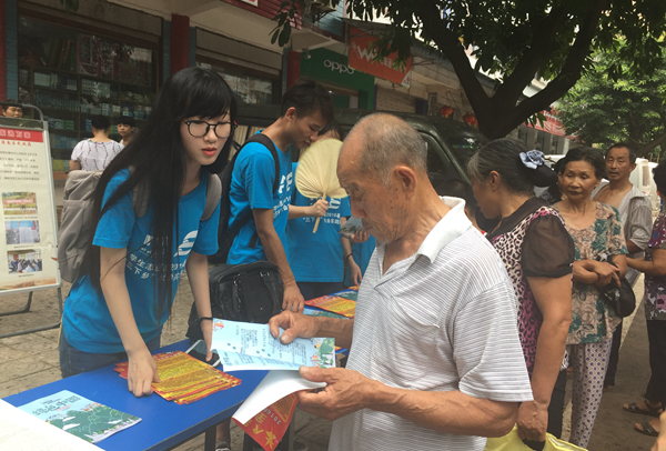 活动的第四天是新胜镇赶集的日子,建筑艺术系社会实践团队开展了环境保护主题宣传活动,希望通过环保宣传单的发放和讲解,让大家有更强烈的环保意识,为公益事业贡献力量。下午同学们来到杨闇公烈士陵园,了解他的英雄事迹,为他宁愿牺牲性命也不愿放弃信仰的精神所触动,对其强烈的爱国情怀肃然起敬。