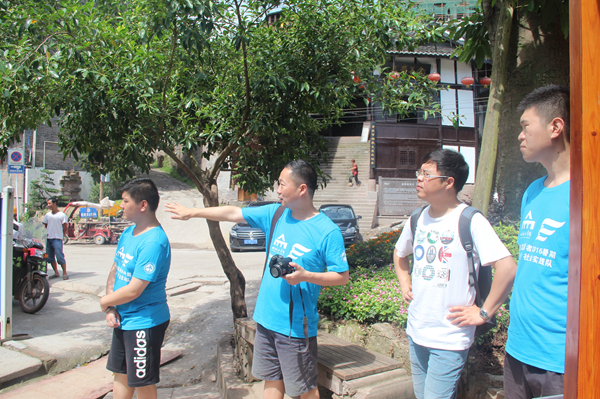 首先,古城工作人员为实践团讲解了安居古城的历史沿革及其主要遗址。这里主要有徽式建筑风格的天后宫、清康熙年间“湖广填四川”时各省移民为同乡联谊所建的湖广会馆、刘伯承纪念馆、抗战时期黄埔军校旧址等。通过调研与交流,实践团感受到了安居古城深厚的文化底蕴。