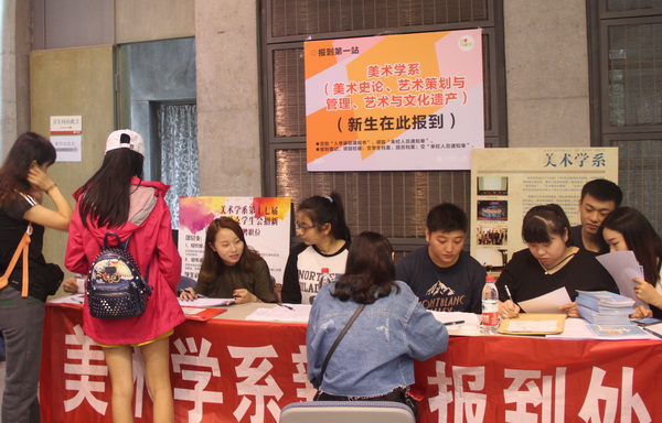9月8日上午,来自全国各地的美术学系88名新生来到我校多功能厅报到现场办理入学手续。迎新现场秩序井然,美术学系领导、办公室管理人员及学生会的同学热情地为新生及家长解答疑难,提供帮助。同时,美术学系今年依然为新生提供了四年学习书目,以便同学们尽早适应系科特点,有针对性地学习。