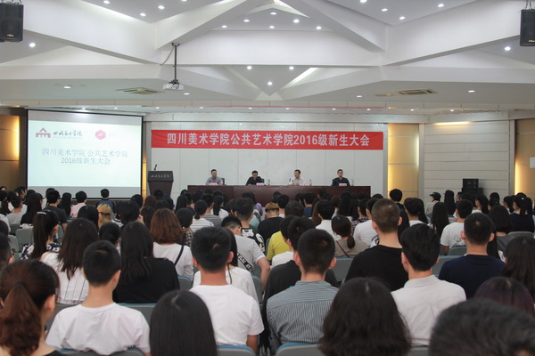 10日下午2时30分,公共艺术学院在黄桷坪校区多功能厅举行了2016级新生大会,学校党委副书记左益、公共艺术学院党政领导、各系主任、教研室主任出席了会议,公共艺术学院党总支书记钟正武主持会议。公共艺术学院副院长郭晏麟介绍了学校校史及公共艺术学院各专业现状和发展方向,并激励新同学们对自己所选学院和专业要有信心。老生代表李新颖、新生代表向诗琪分别发表了大会感言。