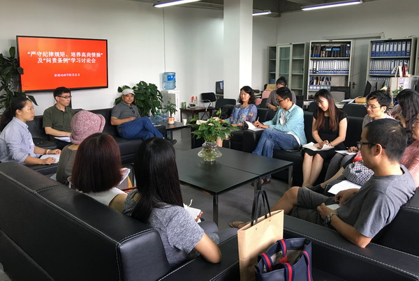 9月22日下午3点,影视动画学院党总支教师党支部在学院A栋会议室召开了“严守纪律规矩、培养高尚情操”及“问责条例”学习讨论会。会议由教师支部书记崔丹主持。支部全体教师党员参加了会议。
