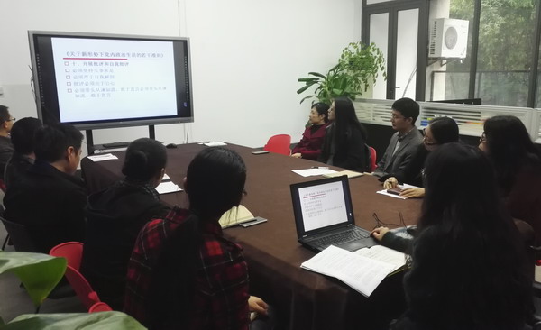 支部书记李霞为全体党员讲专题党课,对十八届六中全会通过的《关于新形势下党内政治生活的若干准则》和《中国共产党党内监督条例》作了系统解读。组织党员同志学习了党内政治生活准则的要点、党内监督的任务内容,要求大家充分认识到严肃党内政治生活的重要性和必要性,每位党员、干部都应增强角色意识和政治担当,在严格的党内生活中坚定理想信念和锻造政治品格。李霞还向全体党员同志传达学习了学校11月8日安全稳定专项工作会议精神。
