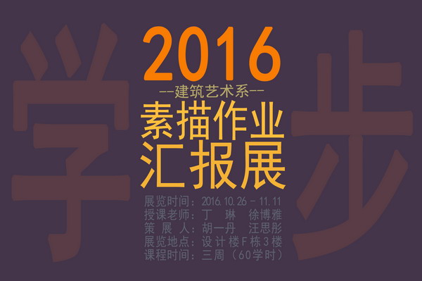 11月15日至30日,建筑艺术系在设计楼F栋3楼举办了“学步——2016素描展”。作为大学新生第一门专业课——素描的学习汇报,“学步——2016素描展”展出了从2016级全体学生近350幅素描中精选出的80余份作品。这些作业所呈现出来的不仅仅是画面本身,更是学生对初进美院、初识建筑专业课的思考和心路成长的历程。