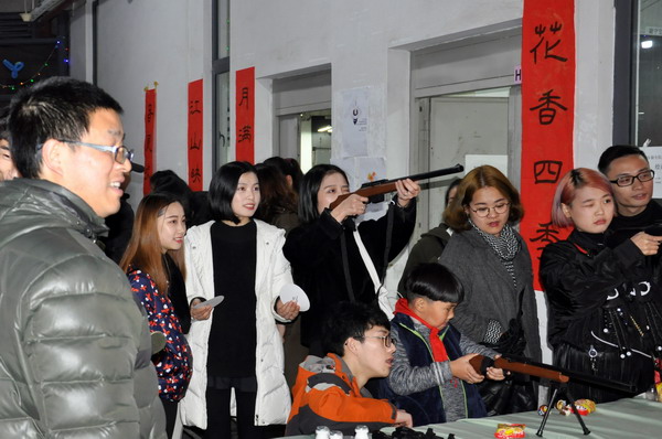 在辞旧迎新之际,为丰富师生校园文化生活,营造欢乐和谐的新年喜庆氛围,版画系于2016年12月29日举行了以“用饺子迎接新年,用寄语祝福学校,用春联歌颂祖国”为主题的新年游园活动,师生齐聚一堂,共庆新年到来。游园会上,贴春联、包饺子、煮汤圆、猜灯谜、套圈、拼“福”字等活动吸引了来自全校师生的参与。