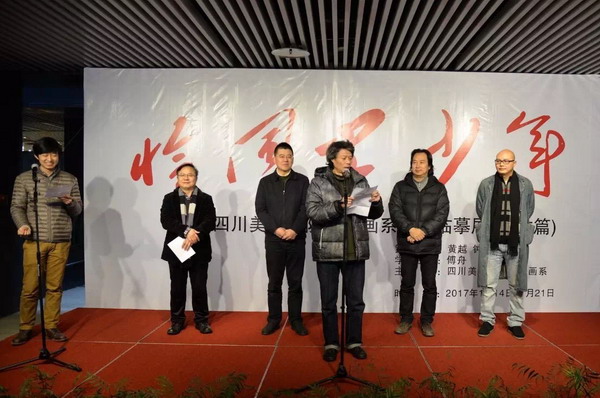 开幕式上,主席台嘉宾首先致辞并宣布正式开幕。随后为获奖同学颁奖,获奖者每人获得四川美术学院中国画系教师书法作品一幅,每件作品都寄托了教师对学生的浓浓期盼和关心鼓励。