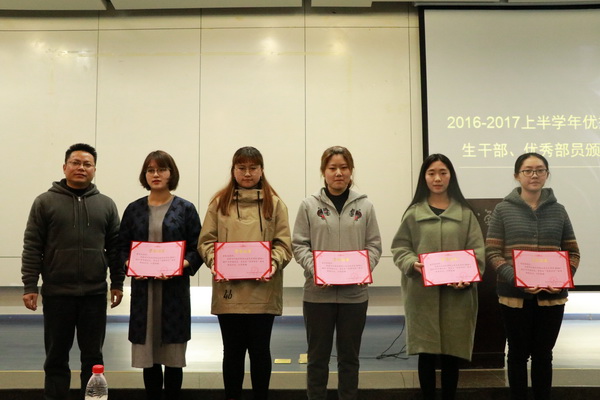 会上,钟正武发言,赞扬了学生工作者精诚团结的精神,对所有同学付出的努力予以肯定并向获奖同学表示祝贺。学生会、团总支各部门负责人分别作了工作总结及规划报告。郭小兵为优秀干部、优秀部员同学们颁奖并合影留念。