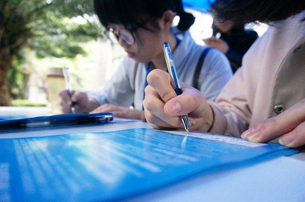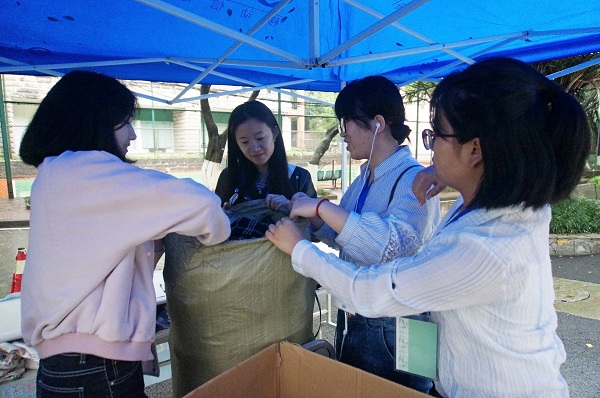 26日上午10点募捐活动开始,老师、同学和附近的居民纷纷前往募捐点献上自己的一份爱心,将打包好的募捐衣物用品交到志愿者们手中。随后,志愿者们认真做好了登记工作。