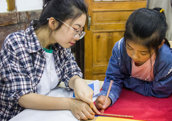 为推进城乡统筹,努力建设学习型城市,不断提高市民素质,促进城市文明,动员广大青年参与为社区群众的服务,四川美术学院设计艺术学院大学生先锋志愿者服务队深入磁器口志愿服务站,开展了市民学校志愿者活动。5月3日下午,设计艺术学院服装与服饰设计系的同学们,为小朋友们带来了“童趣不织布拼贴”小课堂。