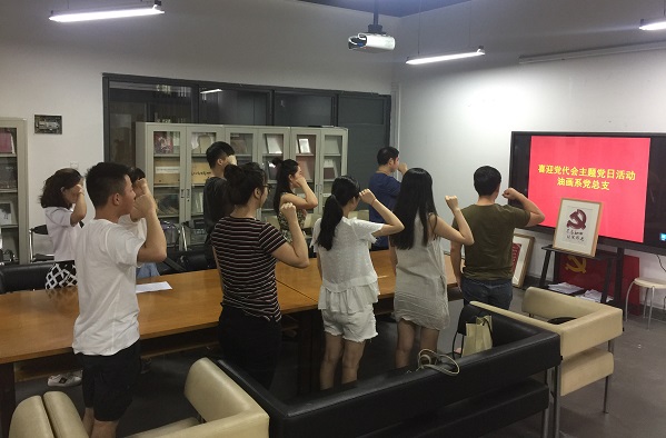 7月6日上午11点,油画系召开全体党员进行“重温入党誓词,不忘初心任重前行”主题活动。全体党员面对党徽宣誓,并谈自己对党员身份的感想。与会党员纷纷结合自己的学习与工作,认真剖析成为党员以来的工作上的心得,表示重温入党誓词对于党员的意义重大,将党员印记再次深深刻印。