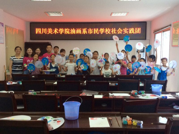在曾家市民学校,社会实践服务团以 “关爱留守儿童·教育帮扶”活动和关爱空巢老人活动为主要内容,丰富当地社区生活的同时,让每一位参与活动的儿童收获的不仅仅是绘画技能,还有快乐和友爱。社会实践团为每位上课的孩子选购了素描纸、油画棒、铅笔、水粉、橡皮泥、剪纸工具等一整套绘画工具,共计30余套。整个关爱教育活动持续了8天,小朋友不仅培养了对美术的兴趣,还与志愿者和老师们建立了深厚的感情,成为了小朋友们的“知心哥哥”、“知心姐姐”。