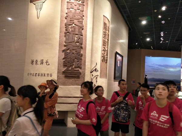 7月11至16日,四川美术学院中国梦红色文化表情包设计实践团一行9人,来到韶山,实地参观、考察了毛泽东故居、毛泽东同志纪念馆。在毛泽东纪念馆,实践团队通过纪念馆工作人员的详细介绍和讲解,详尽了解学习了毛泽东同志为中华民族崛起,中国人民解放事业所奉献出的伟大的一生;了解了毛泽东同志在青年时期便确立个人伟大崇高的理想志向与奋斗目标,以及劝说家人加入革命,投身到人民解放事业中的光辉事迹。毛泽东主席生平事迹和人格风范,深深鼓舞着青年学子,爱国主义教育意义巨大。毛泽东同志的事迹、思想、风范,永远鼓舞着中国共产党和全国各族人民,坚定不移沿着中国特色社会主义道路奋勇前进。