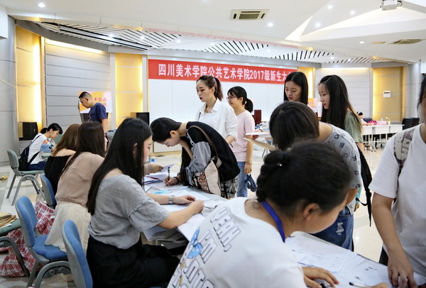 新生报到当天,学校党委书记黄政亲临黄桷坪校区迎新现场进行工作指导。多功能厅设置了院系报到点、保卫处、武装部、教务处、组织部五个流程环节,方便学生和家长集中办理录取手续,填写办理生源地贷款表格,领取军训物品、教材,转党组织关系、交党员档案。在公共艺术学院党政领导的带领下,全院师生共同协作,新生接待工作有条不紊,各环节严谨细致、组织严密、相互协作、统一指挥,周全的服务确保新同学无论何时来校都能安全、方便的报到和住宿。