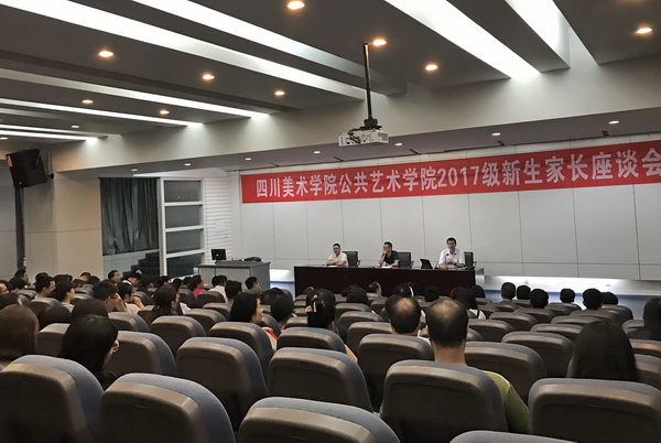 9月8日下午7点,公共艺术学院2017级新生家长座谈会在学术报告厅举行。公共艺术学院党总支书记钟正武、院长郭晏麟、党总支副书记郭小兵,全体系主任、教研室主任、辅导员,以及部分2017级新生家长参加了会议。钟正武主持会议。座谈会重点围绕公共艺术学院的历史前沿、教学科研、师资力量、学生工作及学生发展状况等方面,逐一向新生家长作了详细介绍。随后,与会的各位老师就家长关心的问题进行了逐一的解答。