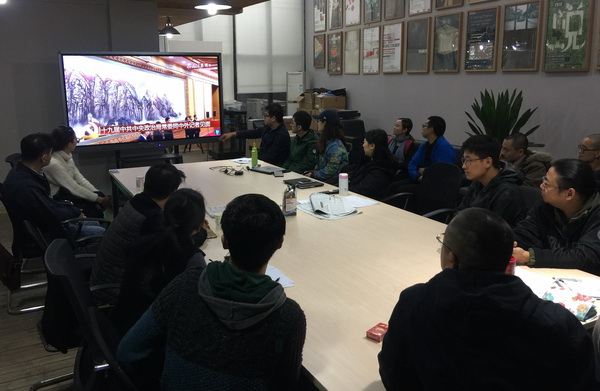 中国共产党第十九次全国代表大会刚刚结束,新媒体艺术系立即组织全系党员、二级中心组成员和教职工,于2017年10月25日上午11点学习党的十九大精神第一个专题“新时代中国特色社会主义思想”。学习了两位专家对新时代中国特色社会主义思想的深度解读:中央党校陈曙光的《新思想:开辟中国特色社会主义新境界》、天津市委党校常务副校长孙大海的《始终坚持以人民为中心的价值追求》。学习采取每一个参会人员领读的方式,让每个教职工由被动的听变成主动的学,增强学习效果。