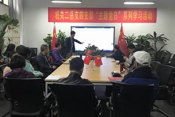 11月1日下午2点,机关二总支四支部在公共课会议室开展了11月主题党日活动,主题为“学习十九大、党员当先锋”。会议由支部书记刘曦主持。