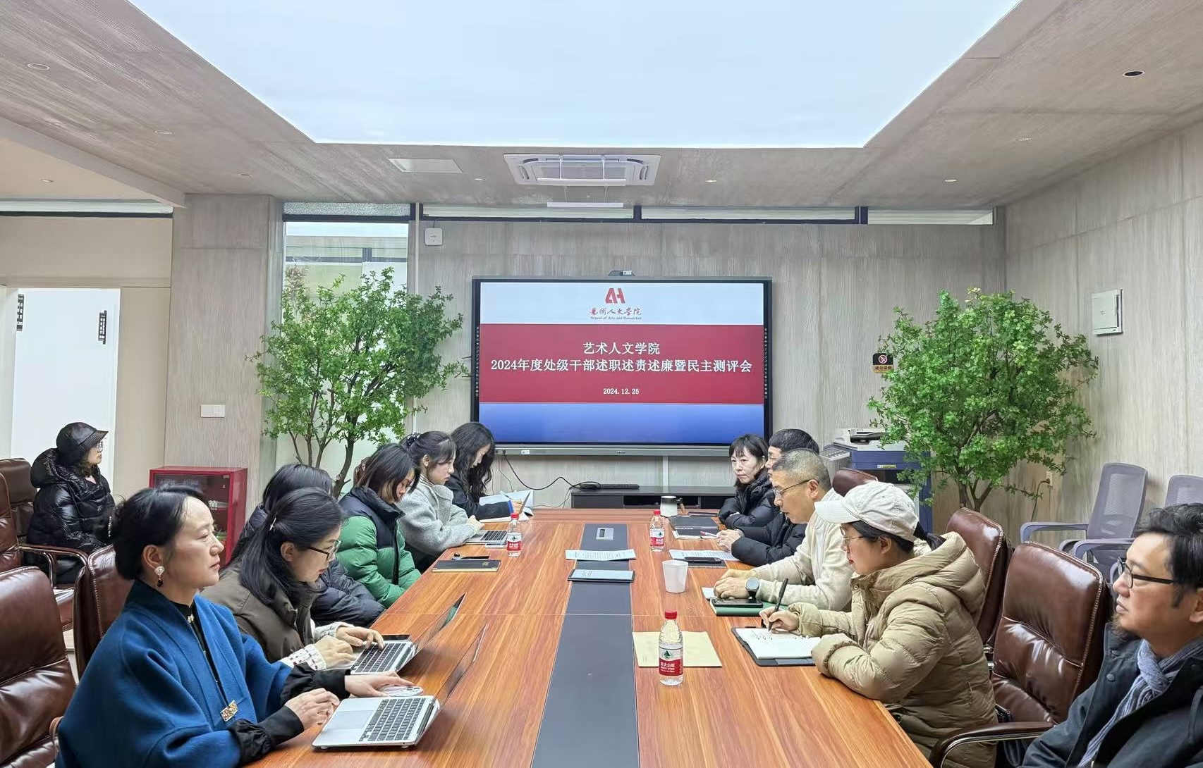 12月25日下午,艺术人文学院在会议室召开2024年度处级干部述职述责述廉暨民主测评工作会。艺术人文学院党政领导及全体教职工和学校党委组织部工作人员参会。会议由学院党委书记杨茂森主持。