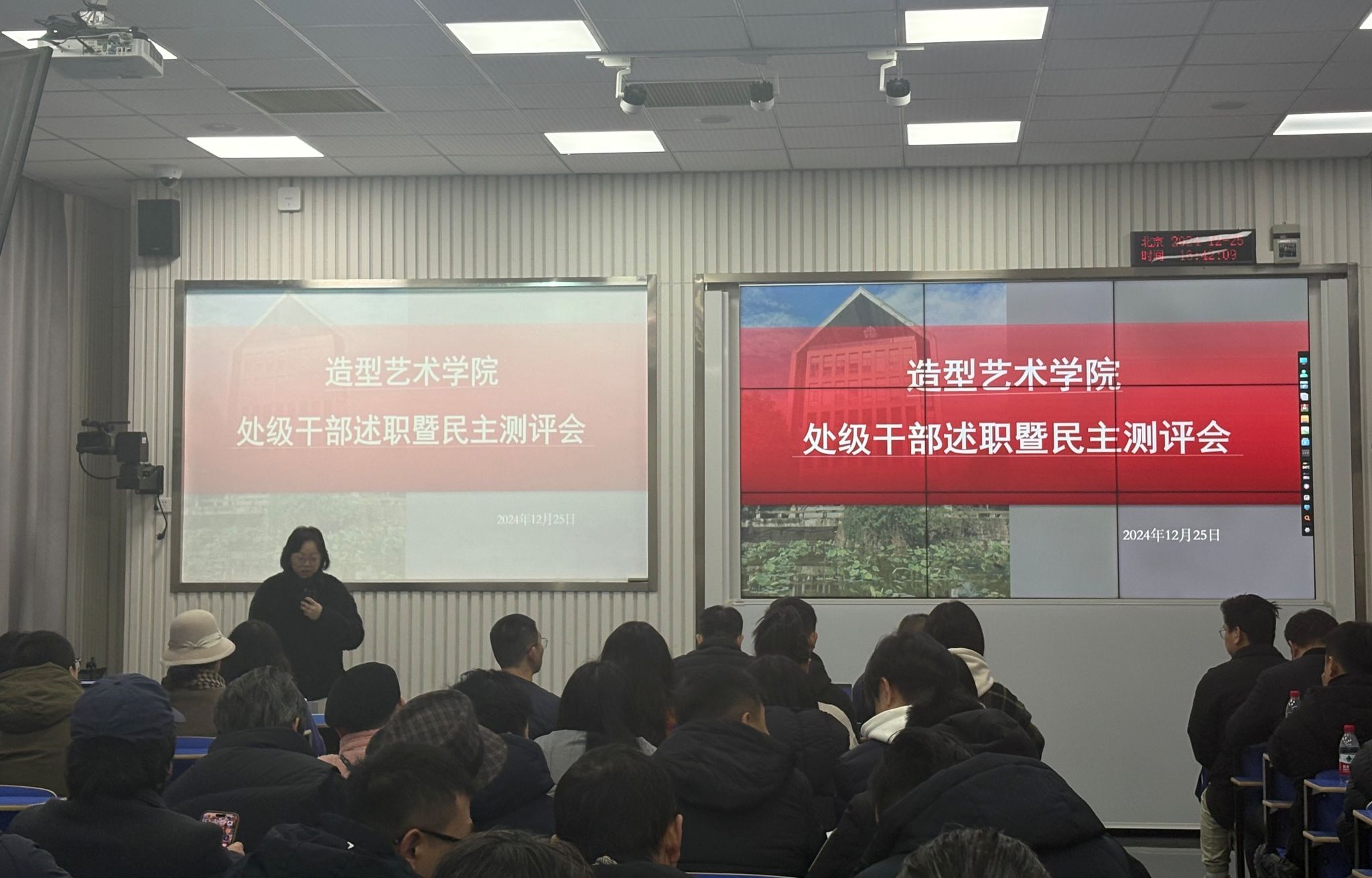 12月25日下午,造型艺术学院召开了2024年度处级干部述职述责述廉暨民主测评会。学校副院长段胜峰出席,造型艺术学院党政领导和学校党委组织部工作人员参会。