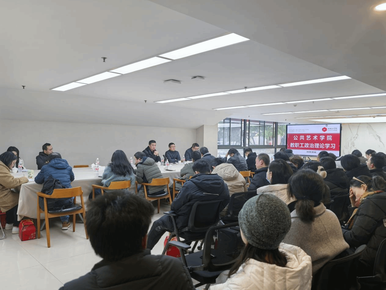 1月16日下午,公共艺术学院在黄桷坪校区召开了期末教职工政治理论学习会。公共艺术学院全体教职工及班子成员参会,会议由公共艺术学院党委书记雍朝永主持。