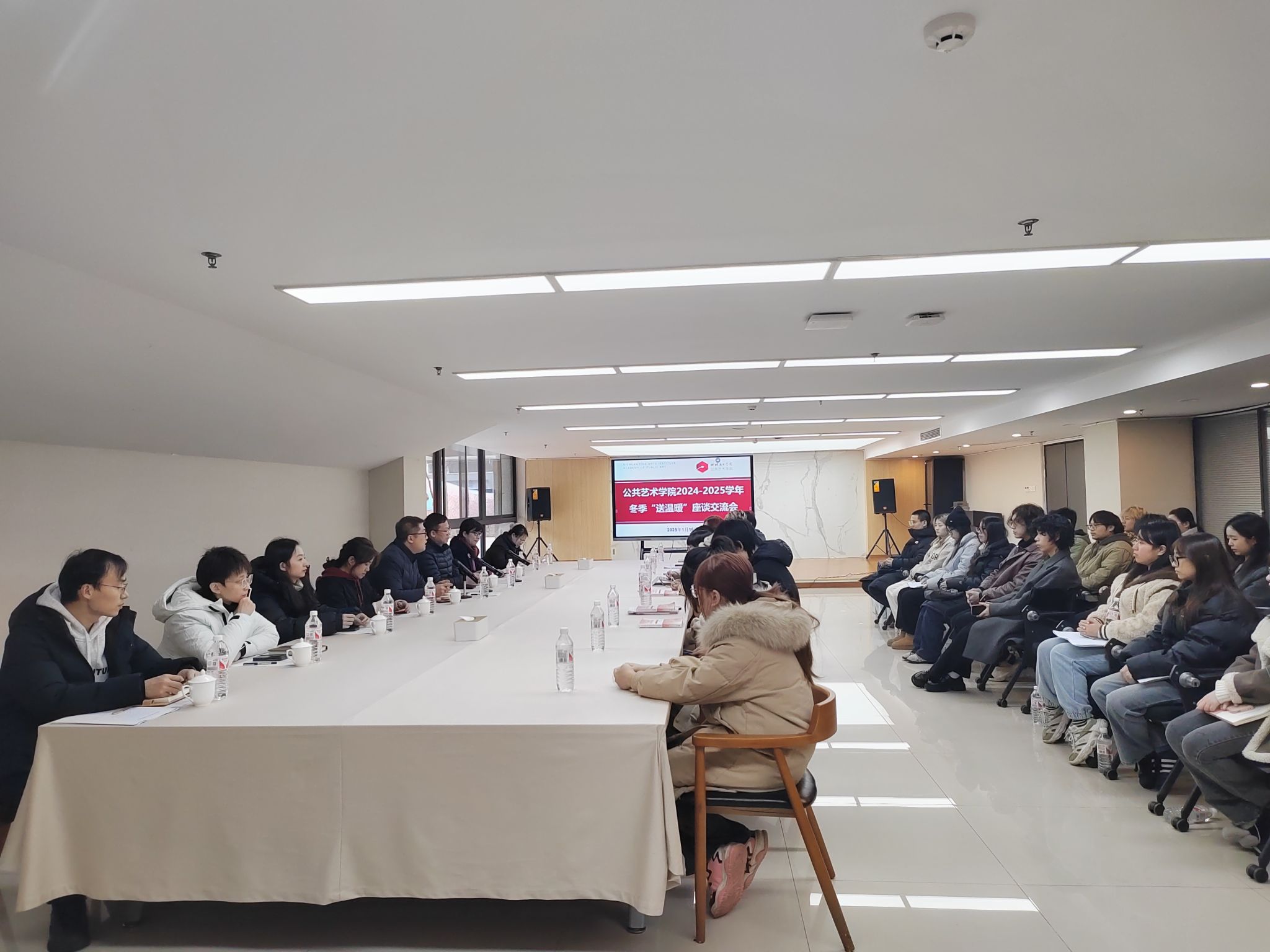 1月16日上午,公共艺术学院在黄桷坪校区举办2024-2025学年冬日“送温暖”座谈交流会。学院党委书记雍朝永、党委副书记张坤、副院长魏婷、全体辅导员和学生代表参加座谈会。