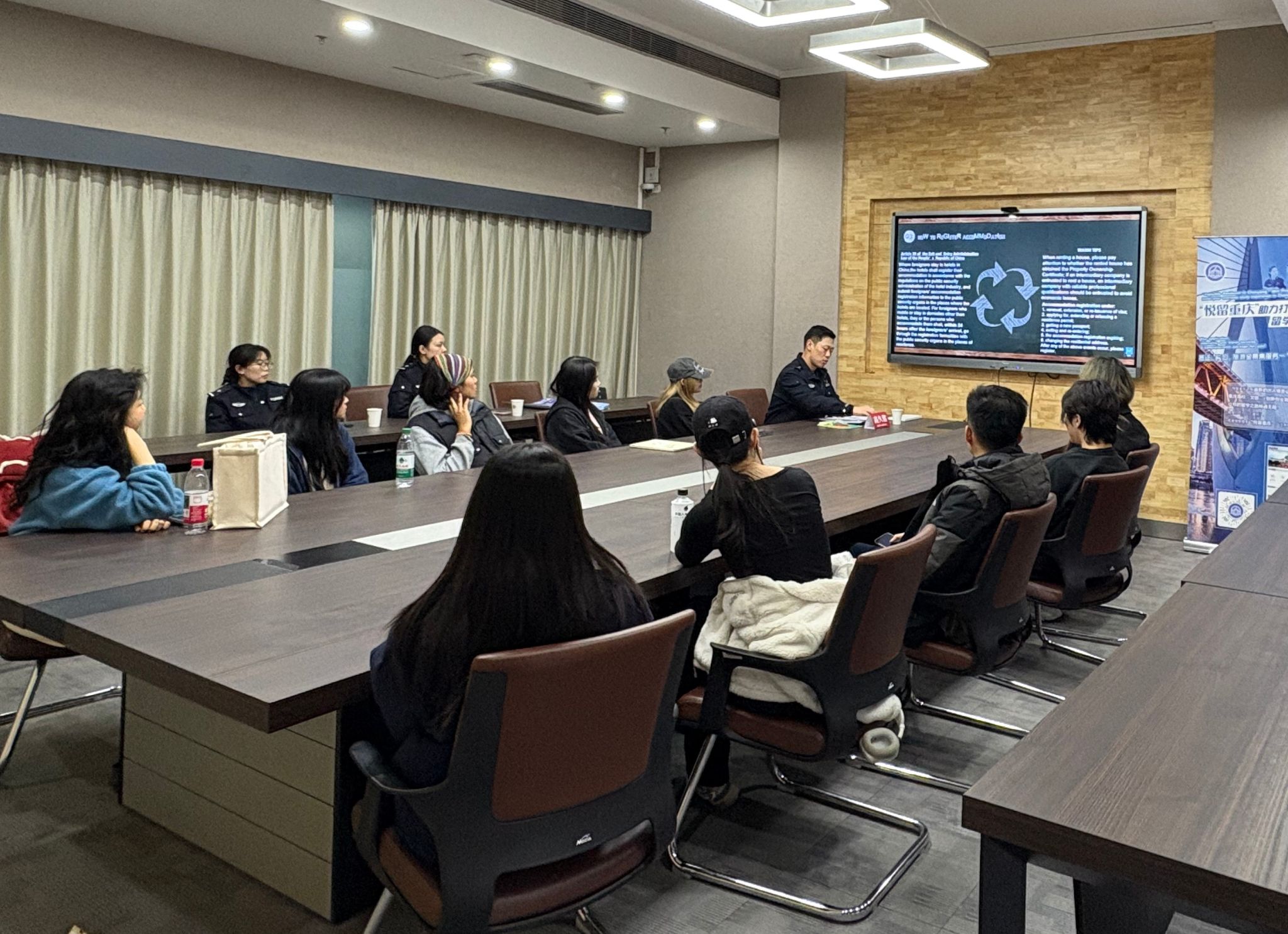 3月6日下午,重庆市出入境总队领管大队长舒林、高新区出入境副支队长高久铭等一行五人到访我校国际交流与合作处,了解相关工作情况,并开展国际学生专题法治宣讲会。我校留学生参加了本次宣讲活动。