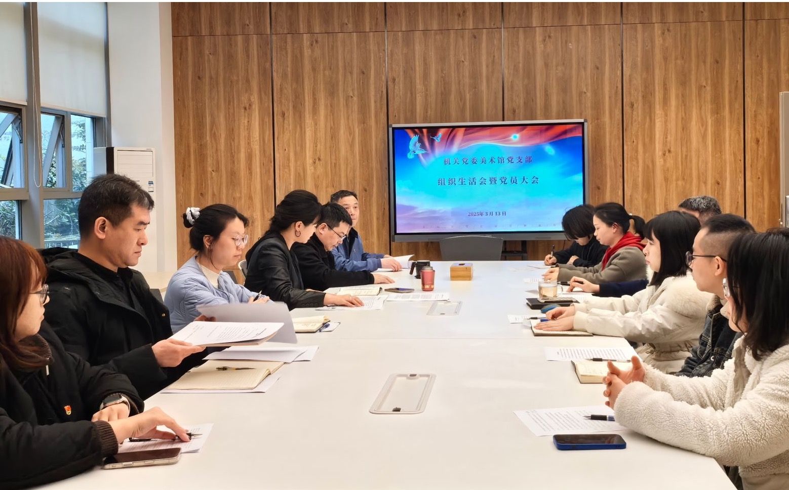 3月13日,机关党委美术馆党支部召开2024年度组织生活会暨民主评议党员大会,学校两委委员王劲到会指导。