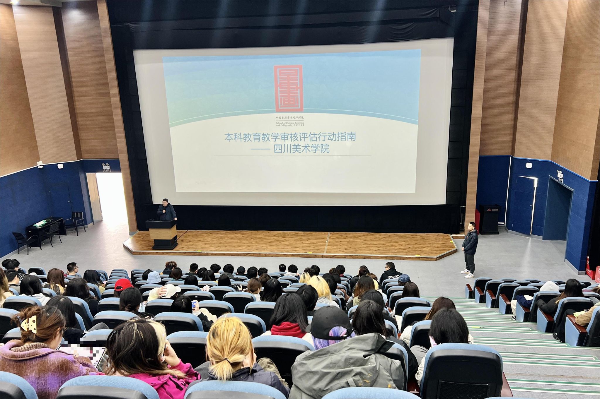 3月31日下午,中国画与书法艺术学院举行“本科教育教学审核评估应知应会”培训会,学院全体本科生参加。