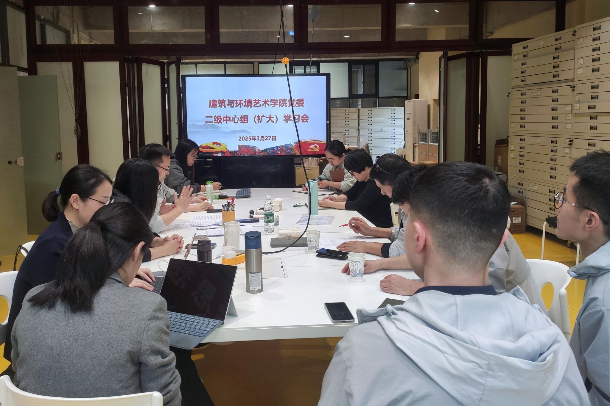 3月27日下午,建筑与环境艺术学院党委召开二级中心组(扩大)学习会,学院领导班子成员、党委委员、纪委委员、系主任、党支部书记、辅导员参加会议。