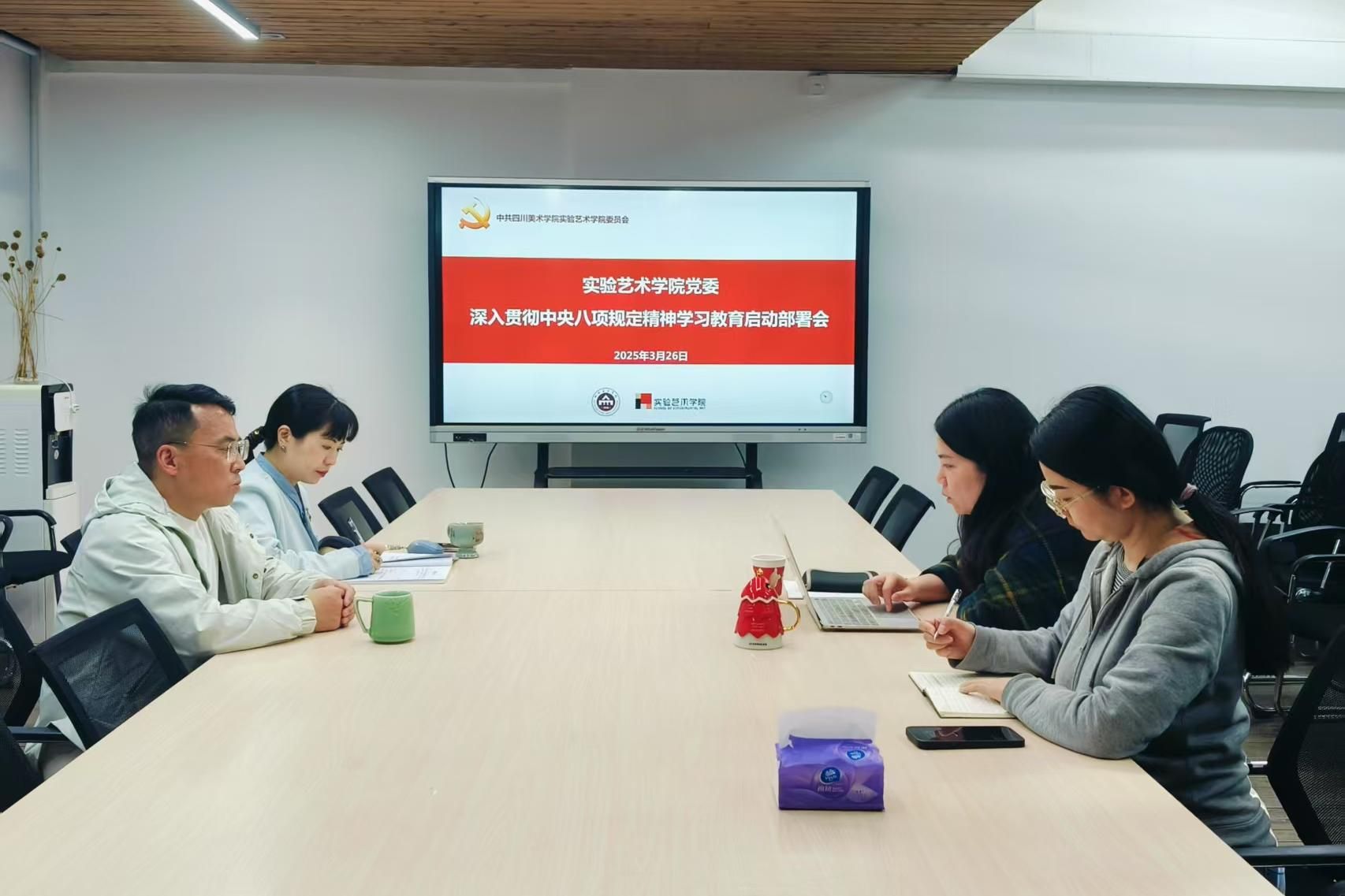 3月26日下午,实验艺术学院党委在学院会议室召开深入贯彻中央八项规定精神学习教育启动部署会。学院党委委员、各党支部书记参会。