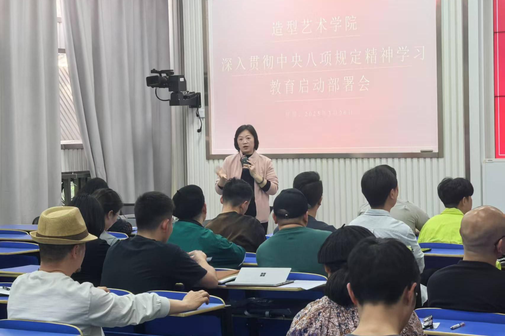 3月26日下午,造型艺术学院在绘画楼召开深入贯彻中央八项规定精神学习教育启动部署会。学院党政领导班子、“两委”委员,各党支部书记、支委委员,各系主任、副主任,全体教师党员参加本次会议。