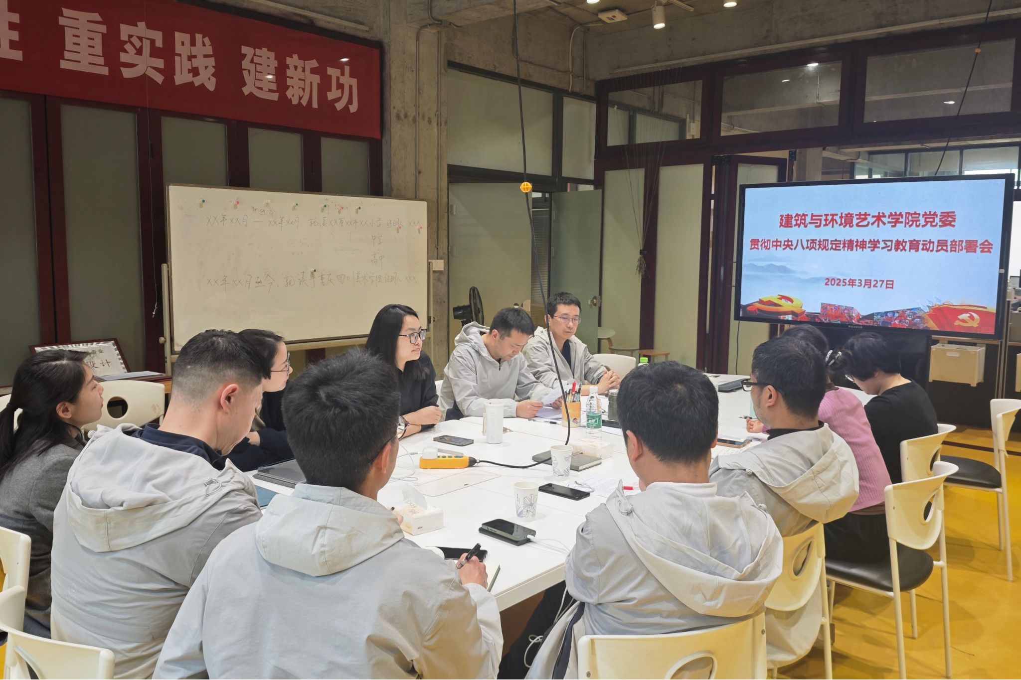 3月27日下午,建筑与环境艺术学院党委召开深入贯彻中央八项规定精神学习教育动员部署会,党委委员、党支部书记、辅导员参加会议。