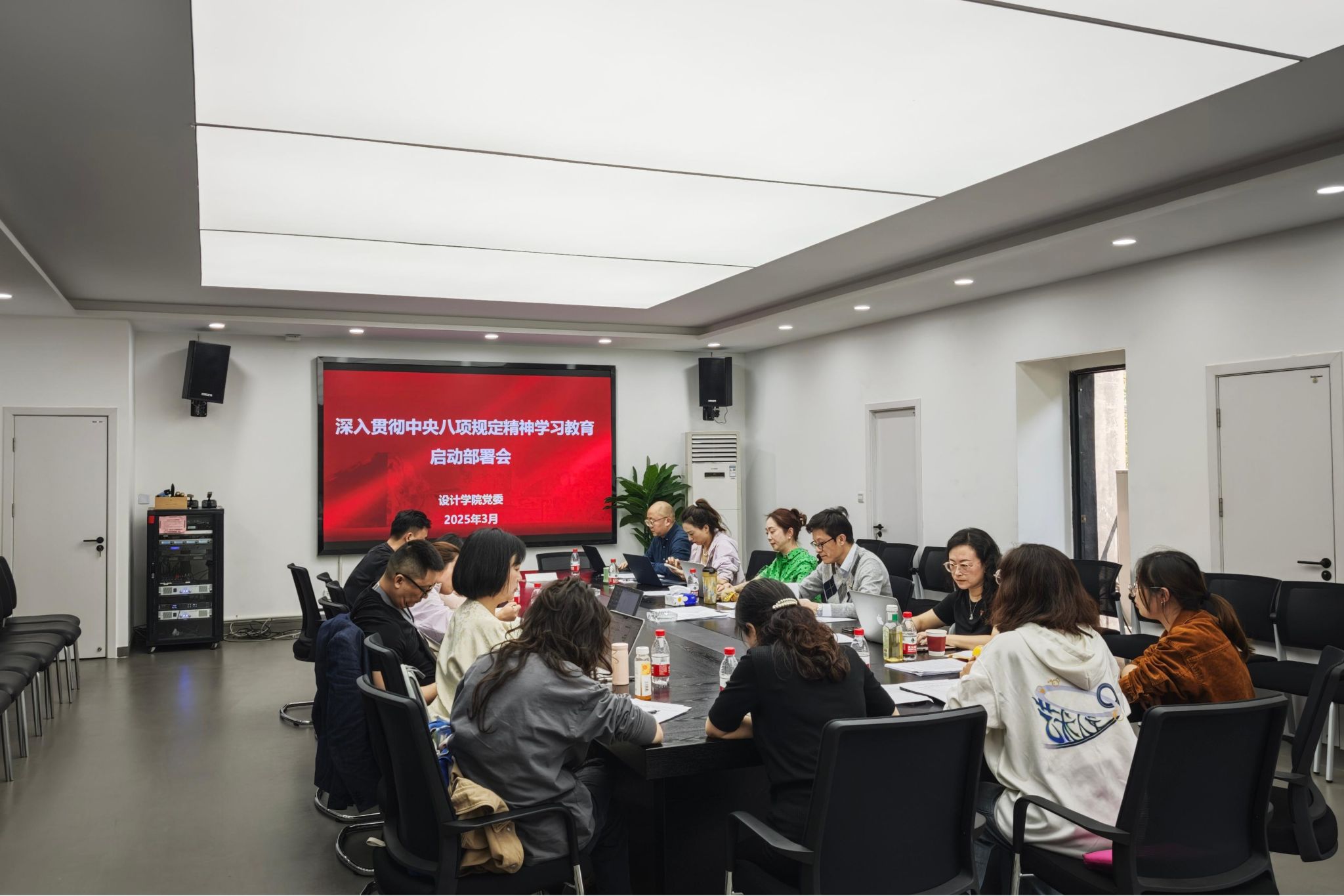 3月27日下午,设计学院召开了深入贯彻中央八项规定精神学习教育启动部署会。学院党政领导班子、党委委员、纪委委员、各党支部书记参会。
