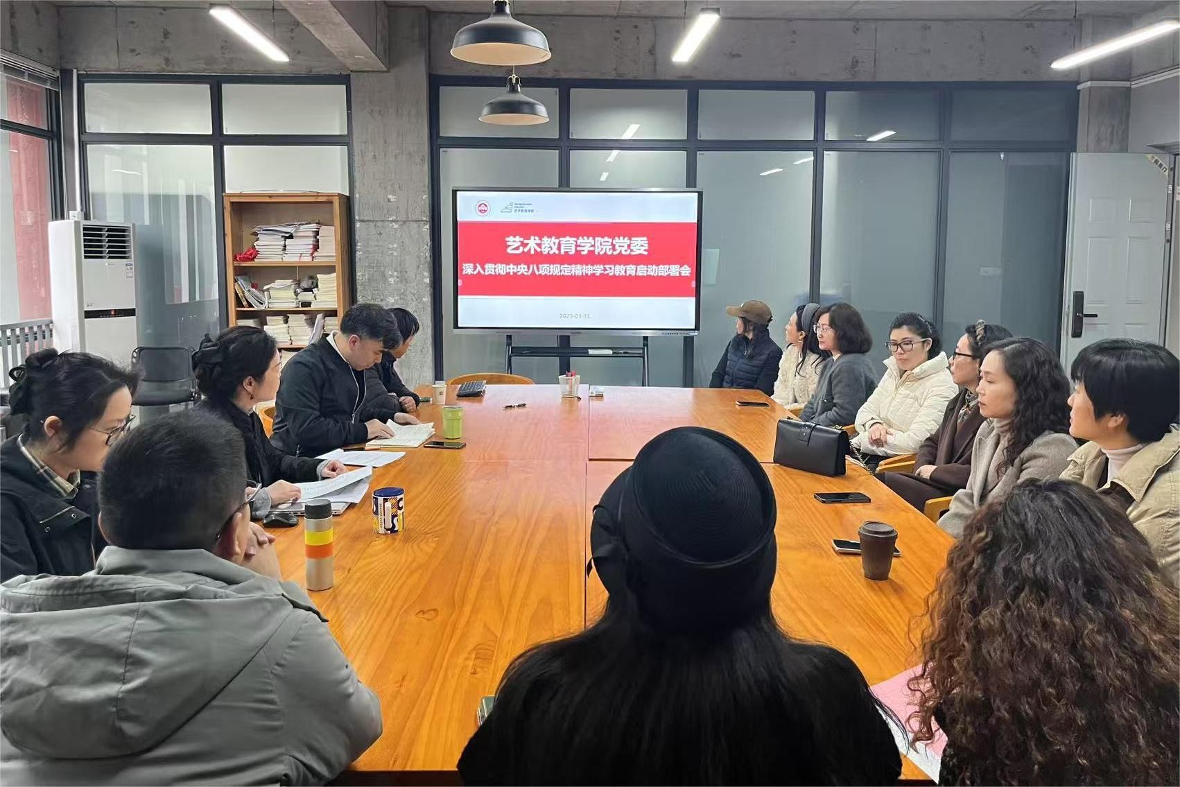 3月31日下午,艺术教育学院党委在综合楼召开深入贯彻中央八项规定精神学习教育启动部署会,学院领导班子成员、学院党委委员、教师党员代表参加会议。