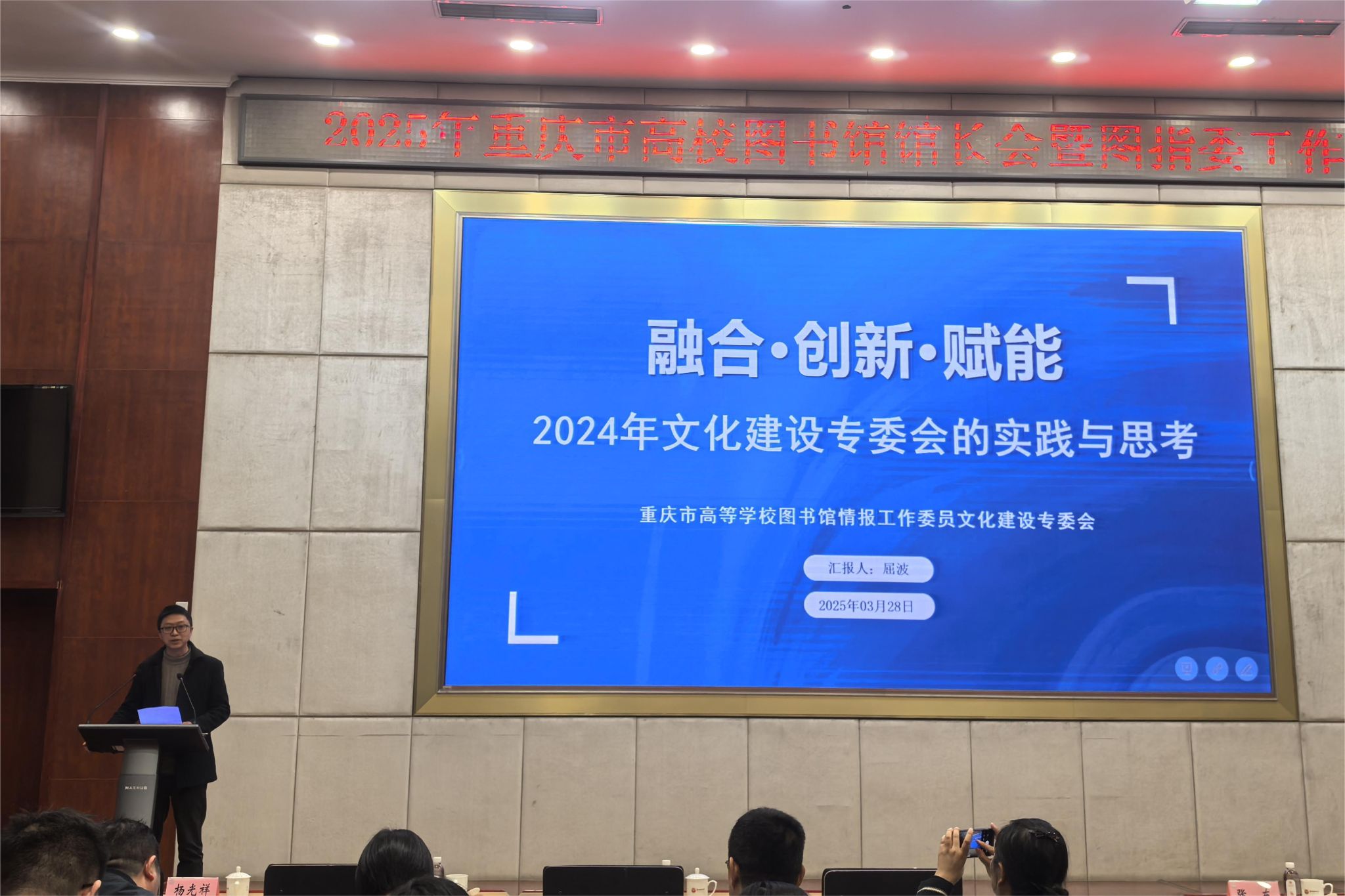 作为重庆市高校图工委文化建设专委会主任单位,我校图书馆负责人屈波代表专委会作专题汇报。2024年,由我校图书馆牵头主办的专委会工作成效显著:成功举办“美育与阅读”主题研讨会,组织全市高校图书馆气排球比赛深化馆际协作,发起书香川美设计奖开辟阅读推广新路径。2025年,我馆作为主任单位将持续推进全市高校阅读文化艺术创作大赛,策划实施师生拍馆特色活动,着力构建艺术创作与影像叙事相结合的美育浸润体系。
