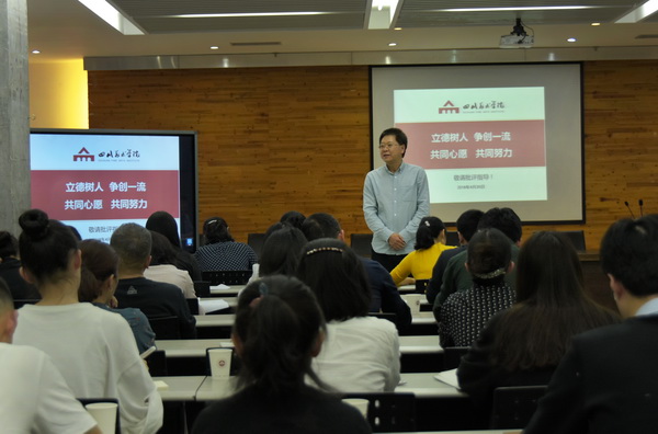 会上,教务处处长王天祥同志围绕本科教学工作审核评估,从“认知”、“定位”、“行动”、“展望”四个维度对学校的本科人才培养工作的整体情况做了宣讲报告。报告介绍了审核评估的内涵、指导思想、范围和重点,从当前社会和教育发展的背景下,解读了学校的办学定位和培养目标,从夯实制度基础、能力基础、队伍基础等方面总结了的教学管理工作,以数据和案例介绍了学校的人才培养模式、课程体系、实践教学体系和教育教学改革成果,从机构、标准、运行机制等角度分析了学校的质量保障体系,报告还汇报了当前评建工作的重点任务,号召通过大家的共同努力落实立德树人、争创一流的任务和目标。