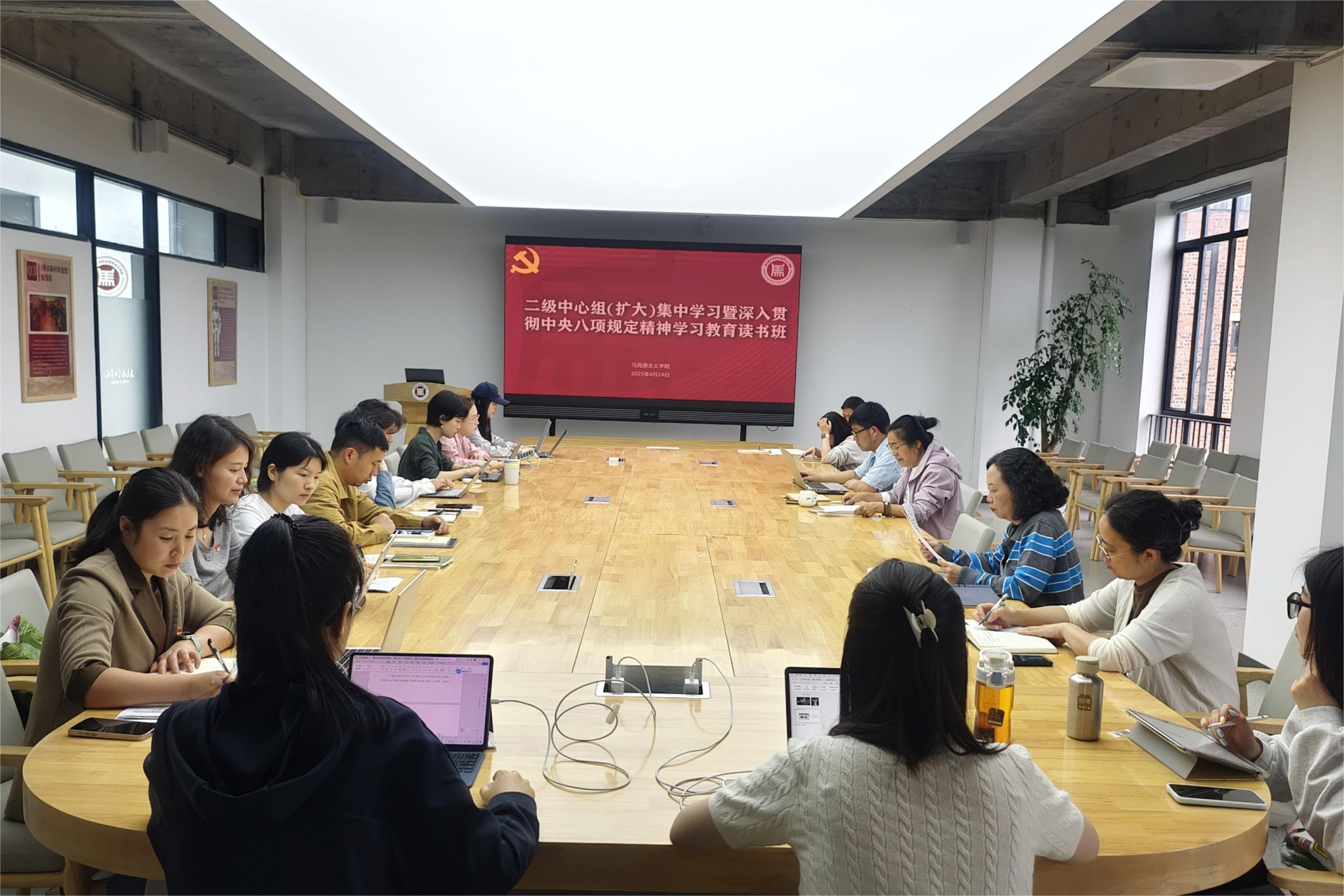4月24日,马克思主义学院举办二级中心组(扩大)集中学习暨深入贯彻中央八项规定精神学习教育读书班第一次专题学习活动。学院直属党支部书记王凤英主持会议并作开班动员。