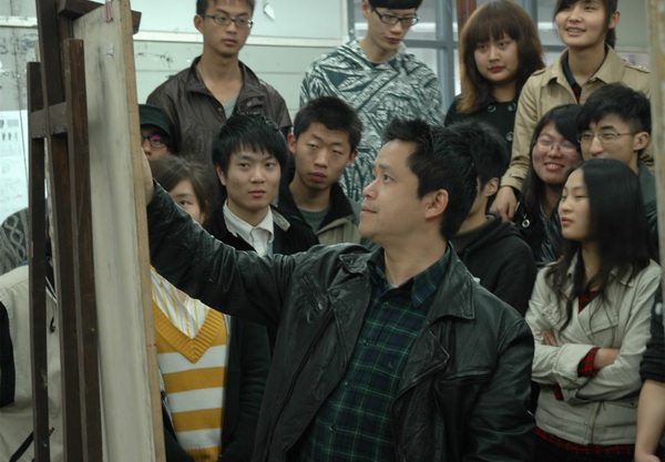 艺术是随时代的变化而变化,今天的油画已经变成一种古老而传统的学科,油画创作是一种比较传统的艺术表现形式。对于油画系学生的学习,我们一直提倡一种开放的视野和一种不断实验探索的精神。在今天这种多元的社会艺术语境下,依然有很多学生在进行着各种艺术语言的尝试,包括装置和影像。以创作带动教学,以展览促进创作的教学思路,让我们的学生能够在一种实战、实践和实效的教学模式下去发展自己的艺术,让他们的作品能够跟当下的社会和时代发生一种关联性,而不是一种自娱自乐。我希望我的学生能够在川美这样肥沃的艺术土壤里面不断提高自己的艺术素养,拥有较高的艺术品味和鉴赏能力,拥有独立判断的人格和创作的活力,更重要的是希望各位能够养成终生学习的习惯。