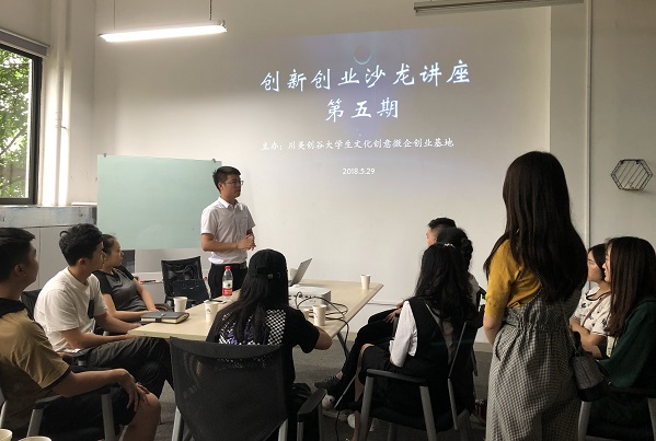 5月29日下午3点30分,公共艺术学院在黄桷坪校区微企园基地开展了第五期创新创业沙龙。主讲人王乾现为中国人力资源和社会保障部创业培训讲师,教育部认证就业指导中级讲师,大学生职业生涯规划导师。川美创谷大学生文化创意微企园的19个入驻团队代表参加了本次沙龙活动。