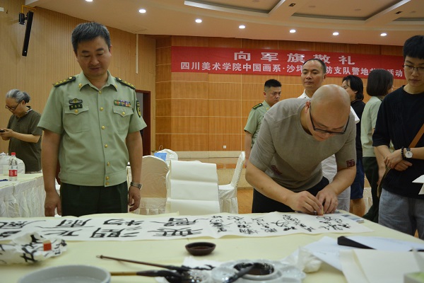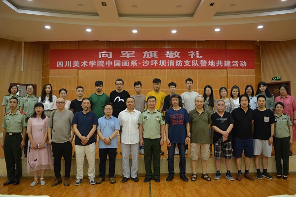 作为继续深化警校合作的系列项目之一,7月5日下午,中国画系与沙坪坝消防支队开展“向军旗敬礼”警地共建活动。学校党委书记黄政应邀出席,沙坪坝区消防支队党委书记、政治委员游先军,支队长段云华和中国画系主任黄山、中国画系党总支书记胡刚及部分师生、官兵代表参加了活动。
