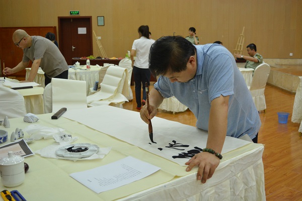 活动中,师生们先后参观了“向军旗敬礼”的活动仪式以及特勤中队战友天地、红门影院、荣誉室等库室。随后来到支队多功能厅,在浓厚的消防文化氛围中进行了书画笔会。