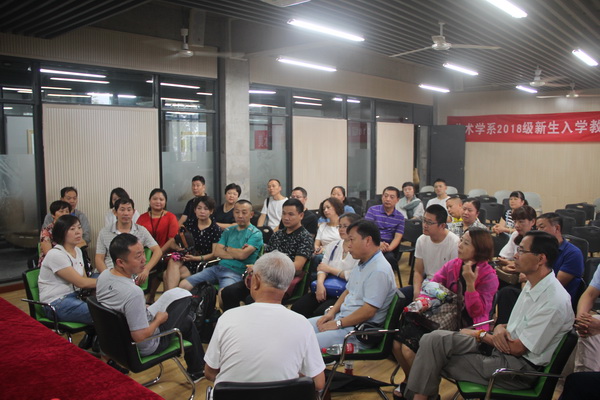 9月7日上午9点,美术学系在设计楼C栋505讲座教室召开了“2018级新生入学教育及家长座谈会”。系党总支书记陈德洪、系副主任何桂彦,各专业教研室主任、2018级各专业班主任以及办公室人员参加了座谈会。陈德洪首先代表全系师生对2018级新生的到来表示热烈欢迎,并对美术学系的发展历史、办学理念、学科优势、人才培养等方面作了详细介绍。何桂彦从系科发展、专业设置的角度进行了全面介绍。随后,各专业班主任全面地向新同学们介绍了三大专业的相关内容。最后,陈德洪对2018级新生提出了期望和要求。