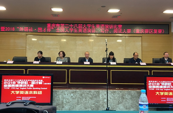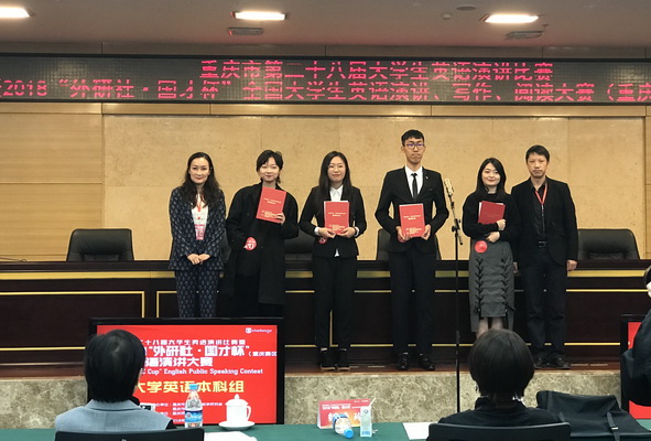 10月20日,重庆市第二十八届大学生英语演讲比赛暨2018年“外研社-国才杯”全国英语三赛重庆赛区选拔赛在重庆师范大学举行。我校设计艺术学院2017级本科生陈嘉尔、建筑艺术系2017级本科生蒋梓琪、美术教育系2017级本科生卢婧婧、设计艺术学院2018级研究生范子潇、影视动画学院2018级研究生周昱伶等五位同学,通过我校公共课教学部于十月中旬举办的校级英语演讲比赛、阅读比赛和写作比赛等三大赛事的精心选拔和重点培训,代表我校参加了重庆市比赛。比赛中,同学们热情投入、沉着冷静、发挥出色,以优异的比赛成绩表现了川美学生优秀的综合素质和较高的英语水平。
