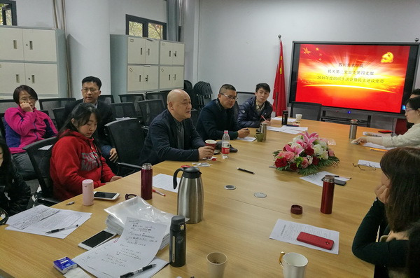 首先,刘曦同志向与会同志介绍了本次会议主题“学用新思想、建功新时代”,并带领全体党员再次认真学习了《习近平总书记在庆祝改革开放40周年大会上的重要讲话》、《中国共产党支部工作条例(试行)》和全国及全市教育大会精神等文件内容。接着代表四支部做了2018年工作总结,查找了一年来支部党建中的问题,并对照检查剖析了个人在工作中存在的问题与不足,提出了今后努力的方向和具体整改措施。