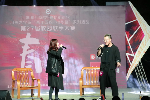 3月20日晚上,由共青团四川美术学院委员会主办,四川美术学院学生会承办的“青春心向党 建功新时代 百年五四 70华诞”系列活动——“青音”四川美术学院第二十七届校园歌手大赛决赛,在虎溪校区断桥广场热烈举行。学校党委常委、副校长彭林权出席比赛现场。各职能部门、各院系负责人及师生共千余人到场观看了本次大赛。来自各院系的50位同学受邀担任大众评审。